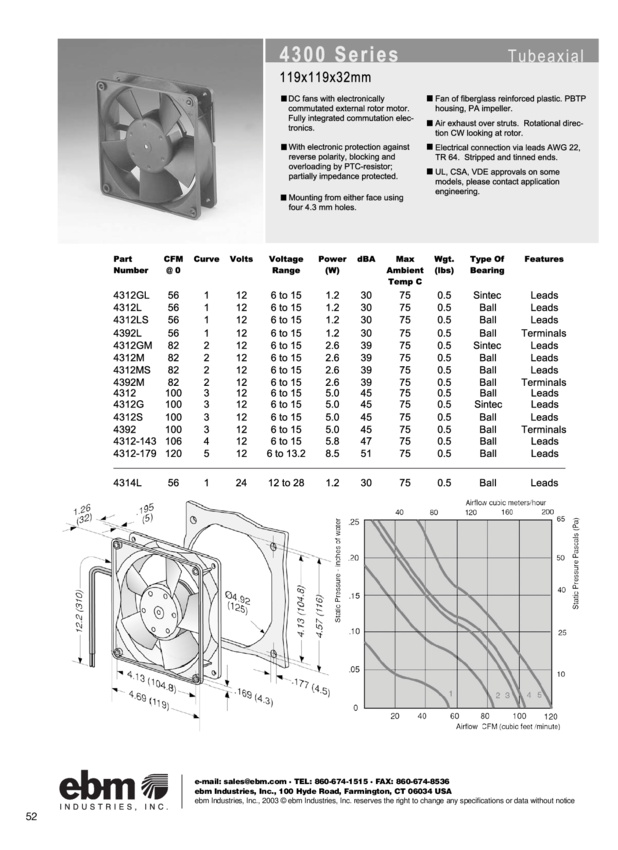 AC Fan Sintec-Sleeve Bearing 115V 9W 60Hz 1750RPM 57.1CFM 32dB Flange Mount