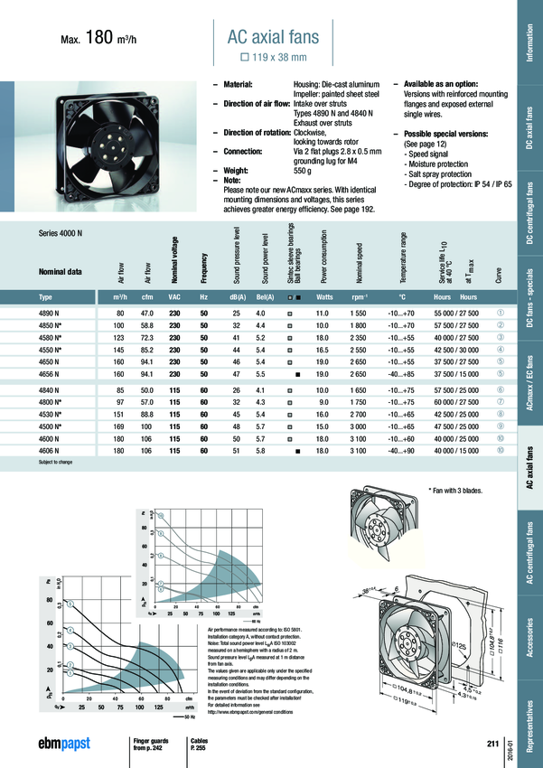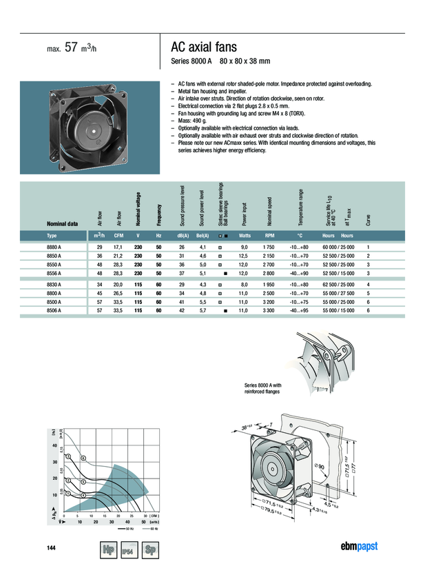 AC Fan Sintec-Sleeve Bearing 230V 12W 50Hz 2700RPM 17.1CFM 36dB Flange Mount