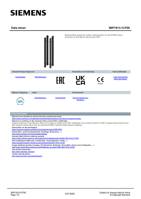 Zaślepka Siemens 3NP1913-1CF00 1 szt.