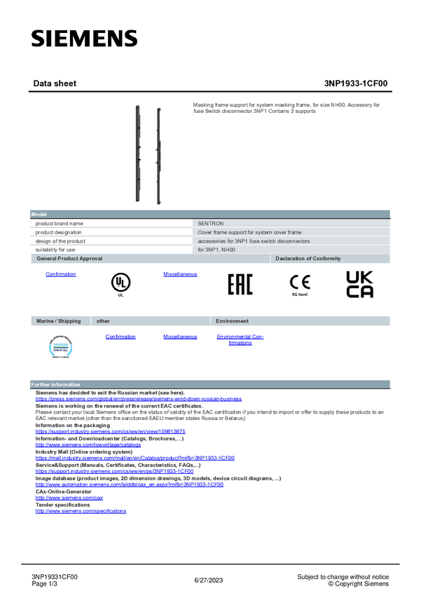 Zaślepka Siemens 3NP1933-1CF00 1 szt.