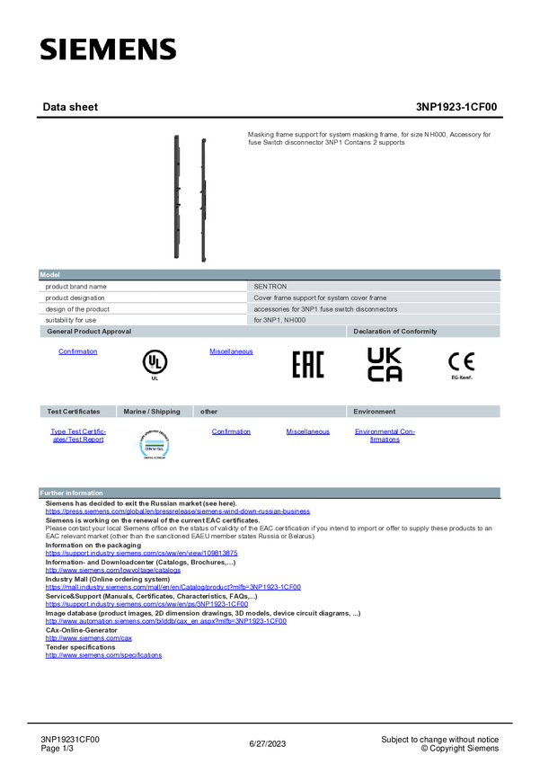 Zaślepka Siemens 3NP1923-1CF00 1 szt.
