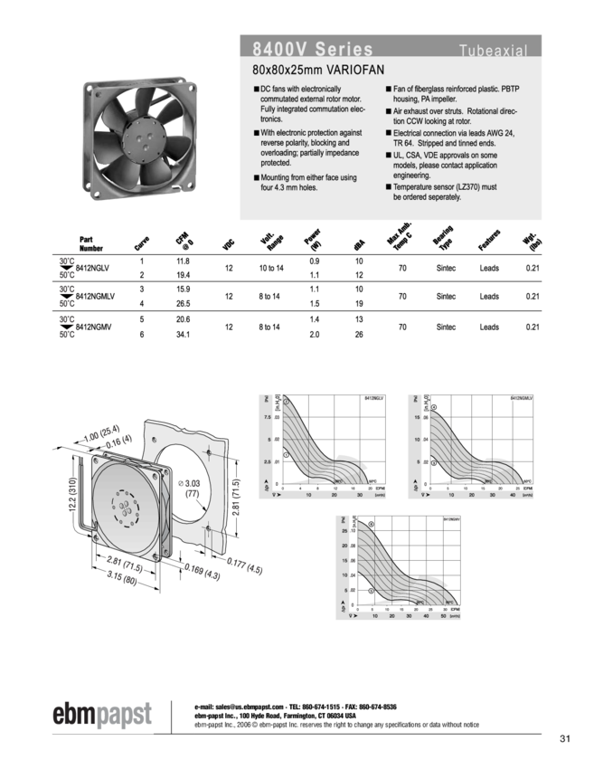 DC Fan Sintec Bearing 24V 2.6W 27.1CFM 38dB Flange Mount