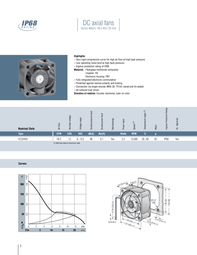 DC Fan Ball 12V 3.3W 13000RPM 14.1CFM 46dB Flange Mount