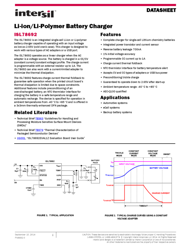 Battery Charger Li-Ion/Li-Pol 1600mA 4.1V 10-Pin DFN
