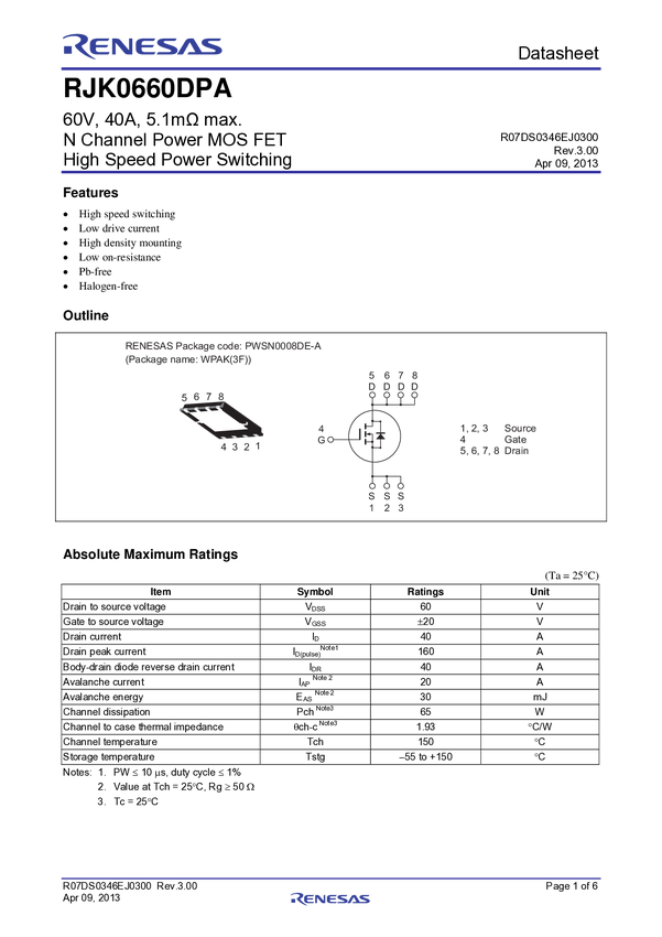 Nch Single Power Mosfet 30V 60A 3.1Mohm Lfpak