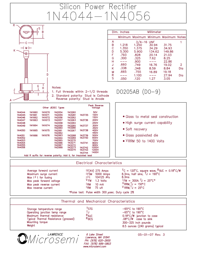 Power Silicon Rectifier Diodes, (Stud Version), 35 A, 40 A, 60 A
