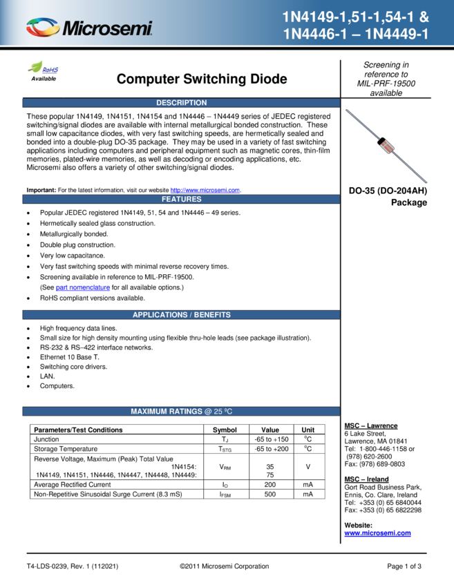 Small Signal Fast Switching Diodes