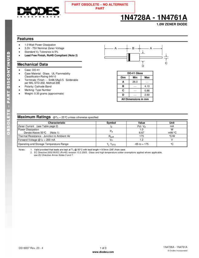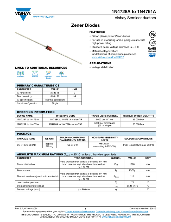 1N4728A to 1N4761A