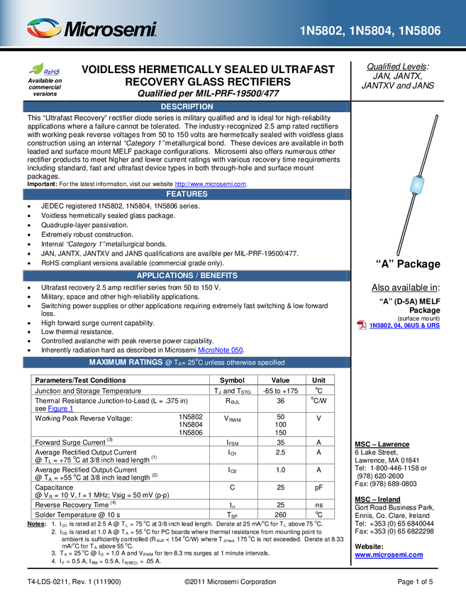 LDS-0211 (2), 1N5802-1N5804-1N5806, MIL-PRF-19500-477