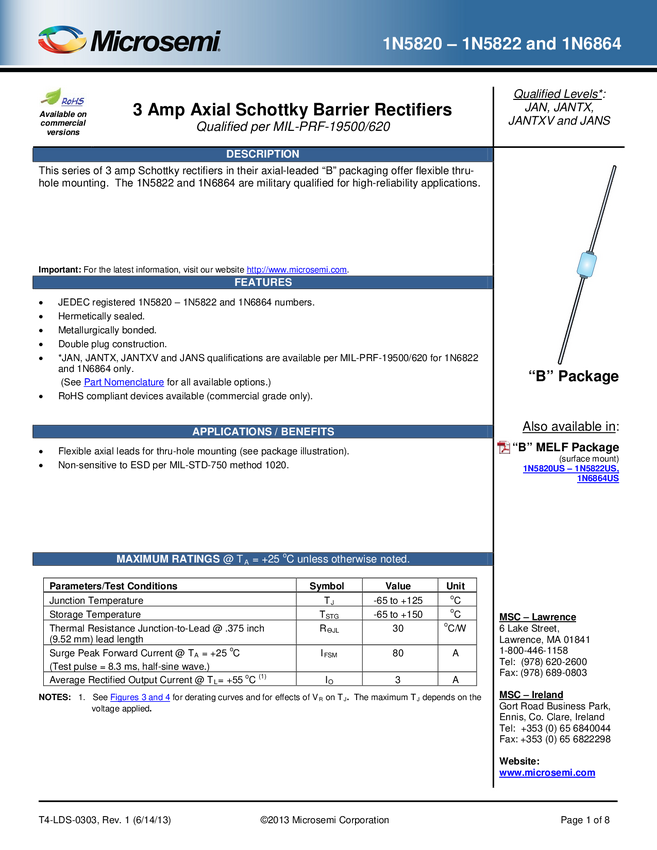 LDS-0303, 1N5820-1N5822,1N6864, MIL-PRF-19500-620