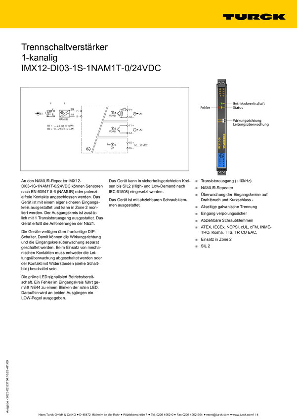 Turck IMX12-DI03-1S- 1NAM1T-PR/24VDC 7580005 1 szt.