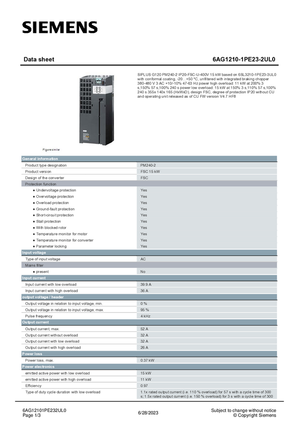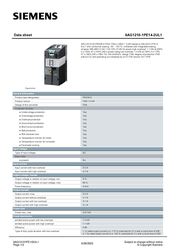Przemiennik częstotliwości Siemens 6AG1210-1PE28-2UL0