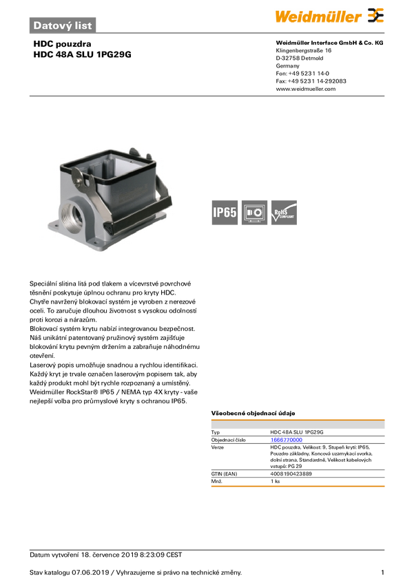 Weidmüller HDC 48A SDLU 1PG29G 1666810000 Obudowa podstawowa 1 szt.