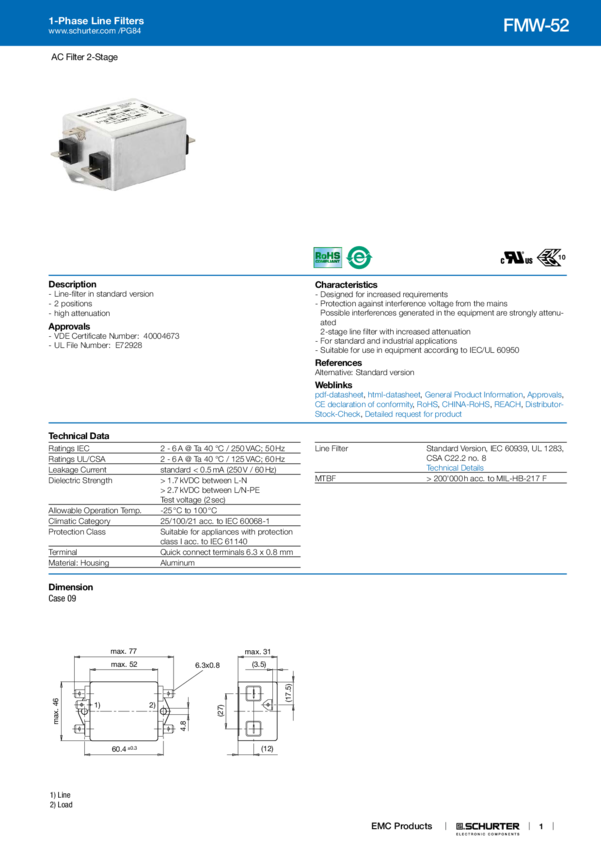 FMW-52 Filter 1PH 2ST 2A 250VAC