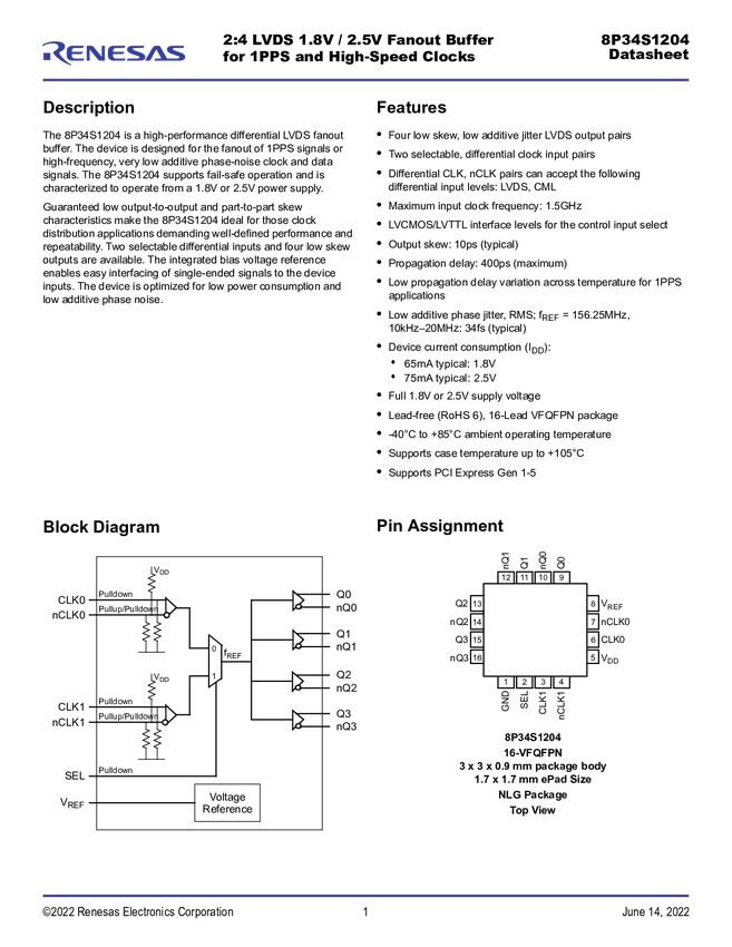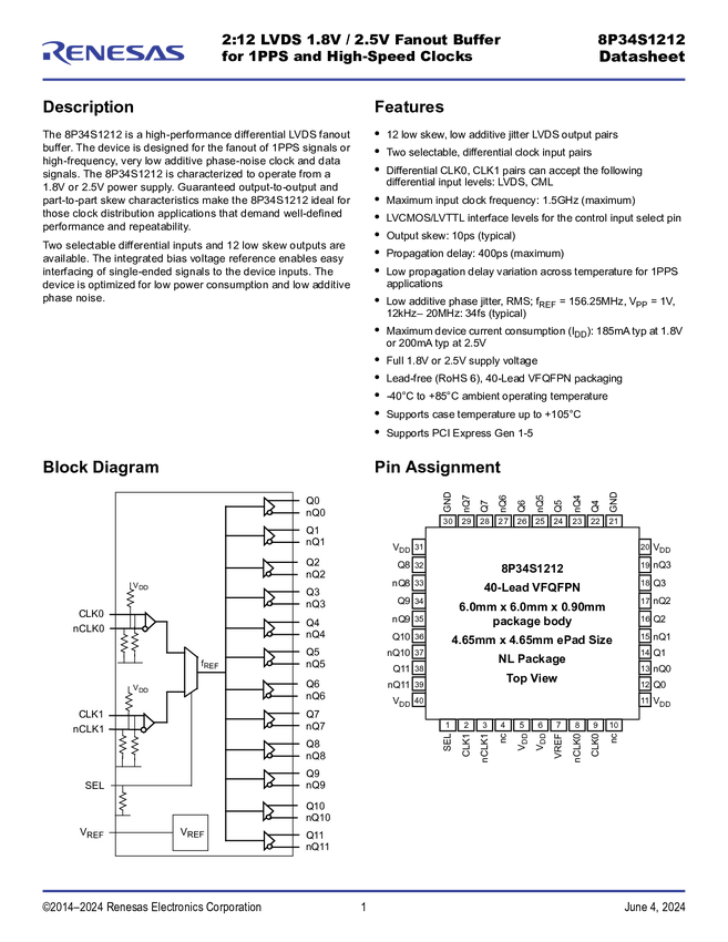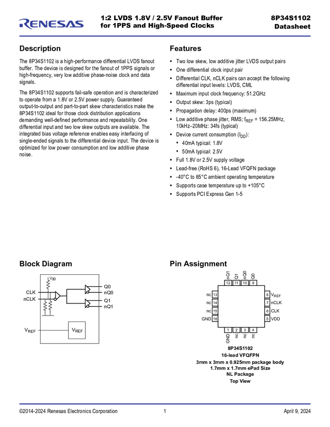 2:12 LVDS 1.8V / 2.5V Fanout Buffer for 1PPS and High-Speed Clocks