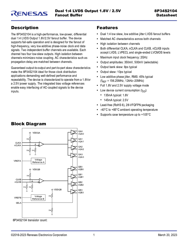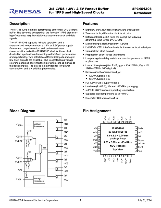 2:8 LVDS 1.8V / 2.5V Fanout Buffer for 1PPS and High-Speed Clocks