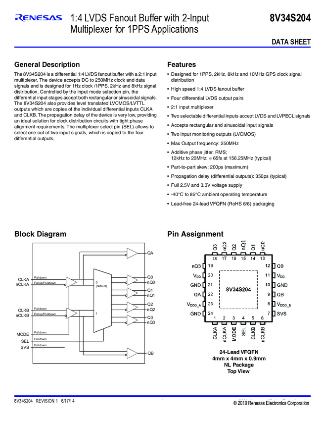 1:4 LVDS Fanout Buffer with 2-Input Multiplexer for 1PPS Applications