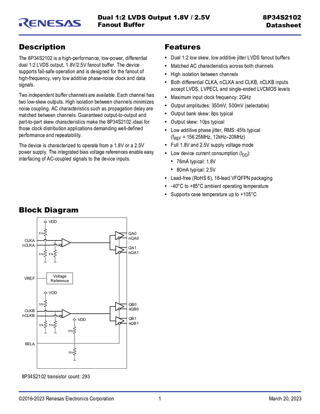 Dual 1:2 LVDS 1.8V / 2.5V Fanout Buffer for 1PPS and High-Speed Clocks
