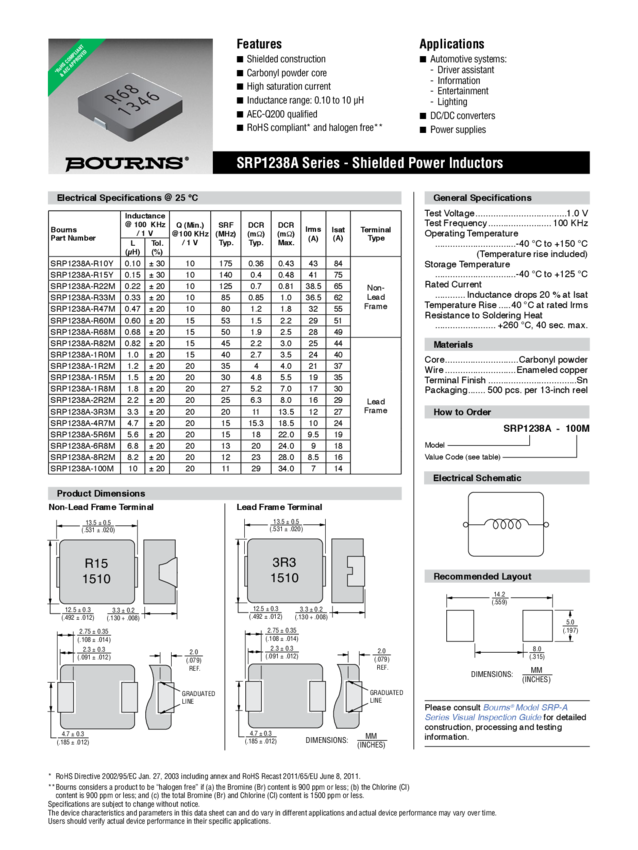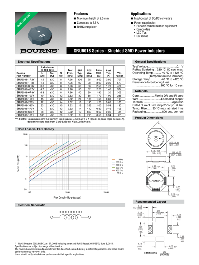 Ind Power Shielded Wirewound 6uH 20% 100KHz Iron 9.5A T/R