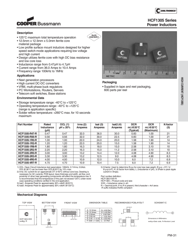 Ind Power Semi-Shielded Wirewound 1.3uH 30% 100KHz Ferrite 4A T/R