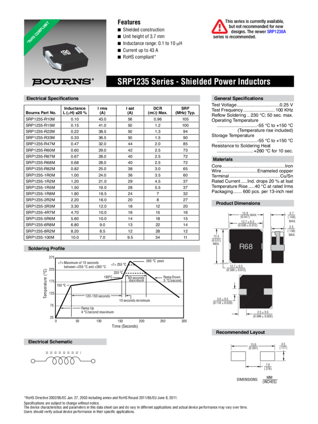 Ind Power Shielded 4.7uH 20% 100KHz Carbonyl Powder 10A T/R