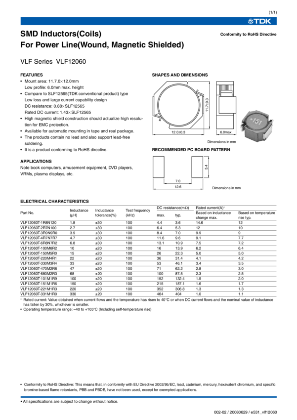 Ind Chip Wirewound 1uH 5% 25MHz 25Q-Factor Ferrite 330mA 1008 T/R