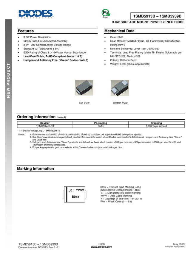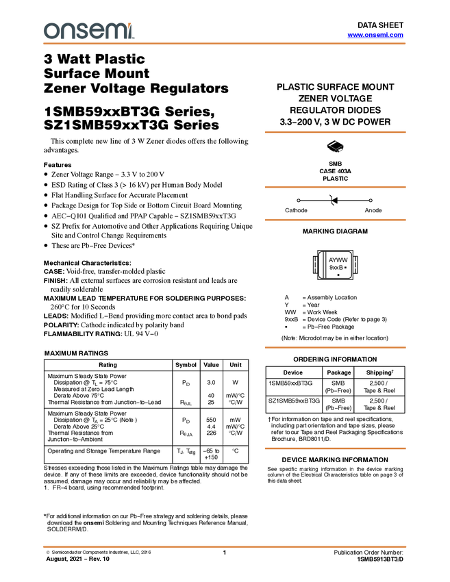Dioda Zenera 36V, 3W, SMB, ON Semi