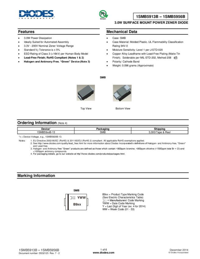 Diode Zener Single 180V 5% 550mW 2-Pin SMB T/R