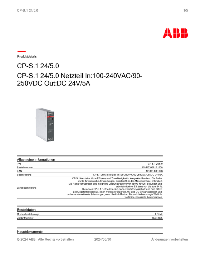 Zasilacz ABB CP-S.1 24/5.0 24 V/DC 7.5 A 120 W