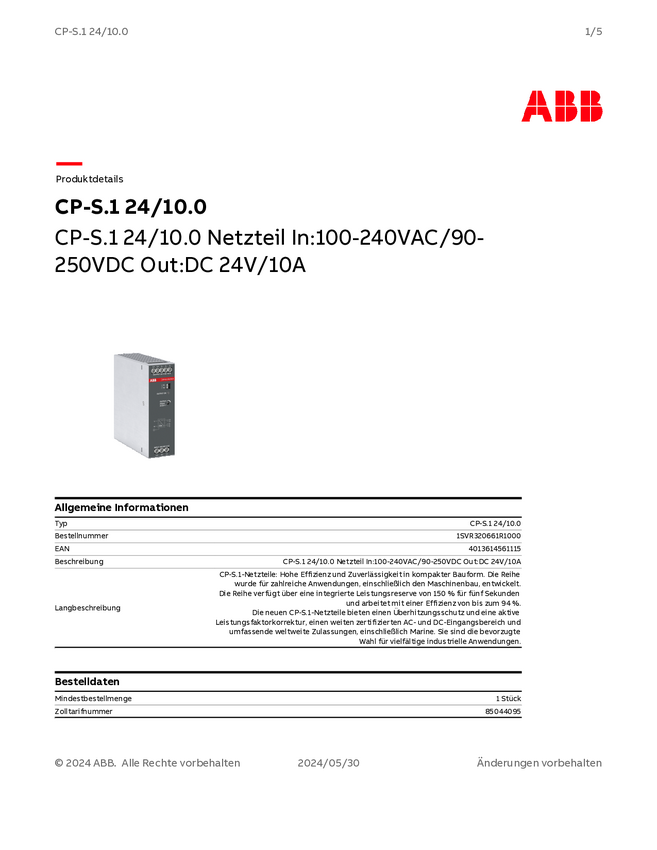 Zasilacz ABB CP-S.1 24/10.0 24 V/DC 15 A 240 W