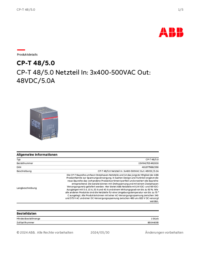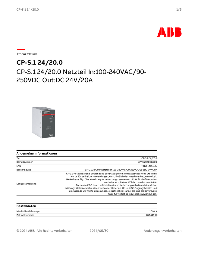 Zasilacz ABB CP-S.1 24/20.0 24 V/DC 30 A 480 W
