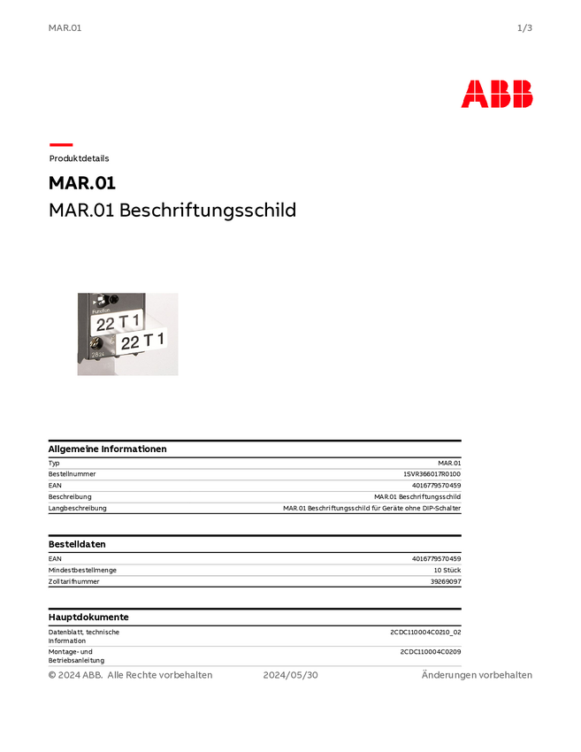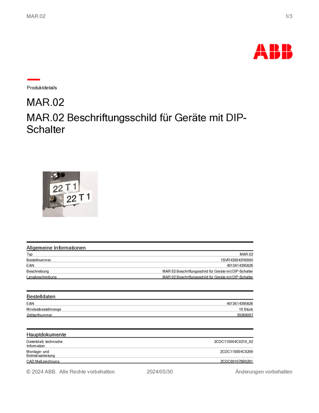 ABB 1SVR730006R0000 Tabliczka z etykietą 1 szt.