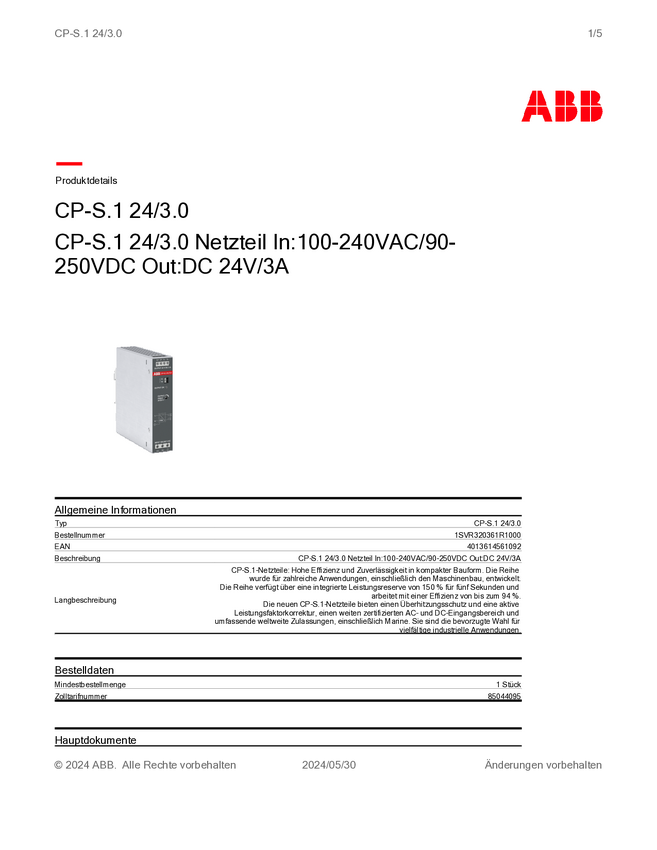 Zasilacz ABB CP-S.1 24/3.0 24 V/DC 4.5 A 72 W