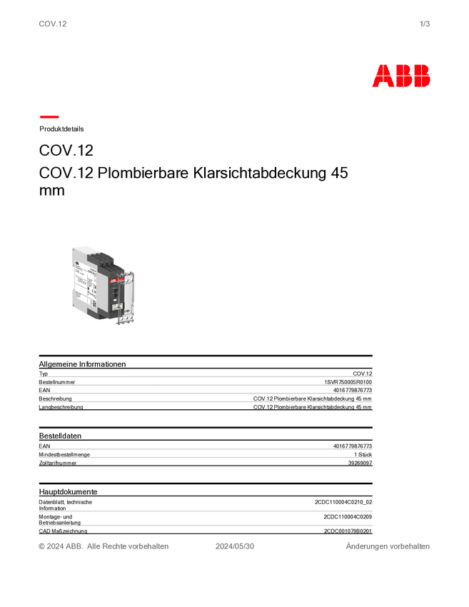 ABB 1SVR750005R0100 Pokrywa 1 szt.