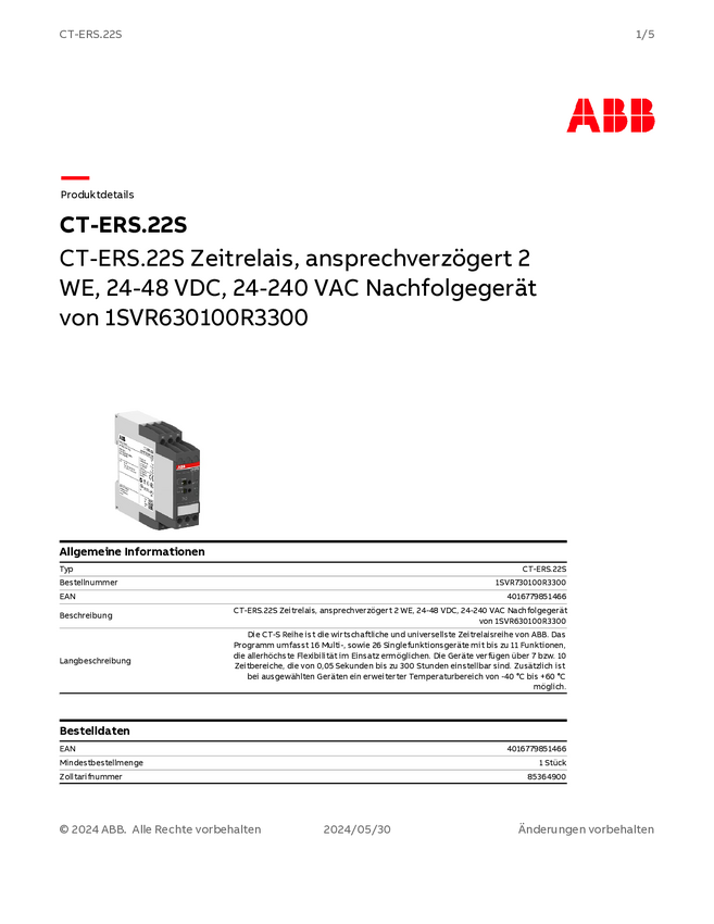 ABB 1SVR500160R0000 Przekaźnik czasowy CT-TGD.12, 6, 1 szt.
