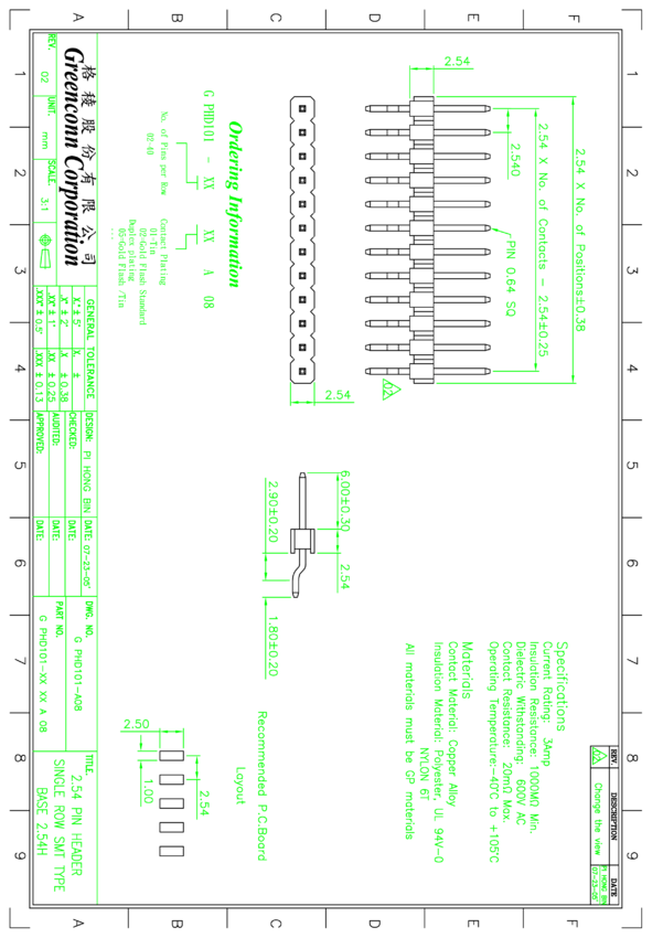 Listwa 1x32 kołków, SMT, bez uchwytu montażowego, Oupiin