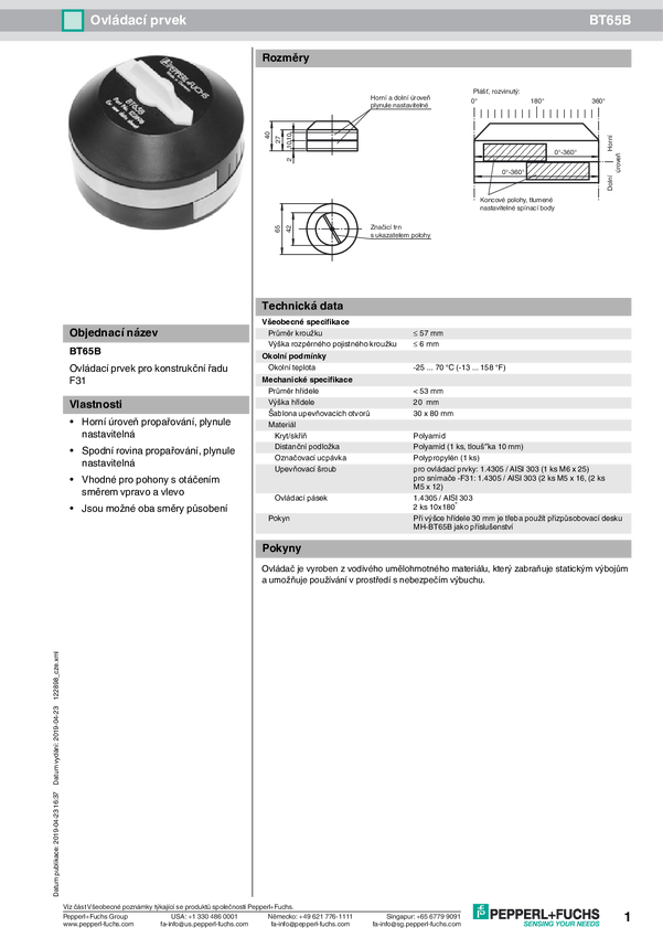 Siłownik Pepperl+Fuchs 122898 BT65B 1x3Gxx3D 1 szt.