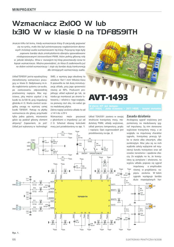 AVT1493 A Wzmacniacz 2x100W lub 1x310W w klasie D - płytka drukowana