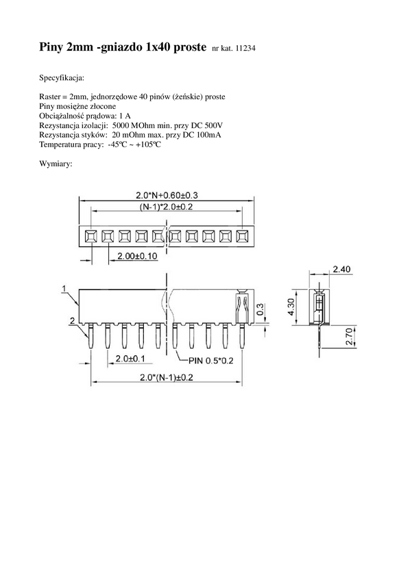 Piny (gniazdo); kołkowe; PBMS40S; 2,00mm; czarny; 1x40; proste; 4,3mm; 2,7mm; przewlekany (THT); złocone; 11234; RoHS; opakowanie/100szt