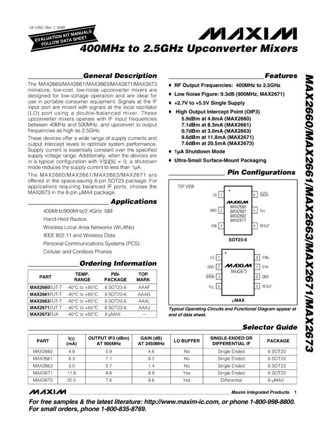 MAX2660, MAX2661, MAX2663, MAX2671, MAX2673 400MHz to 2.5GHz Upconverters