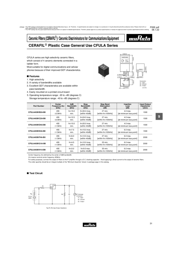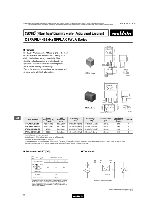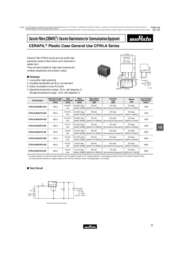 Electromechanical Filter 0.455MHz Freq. <0.5MHz 2000Ohm