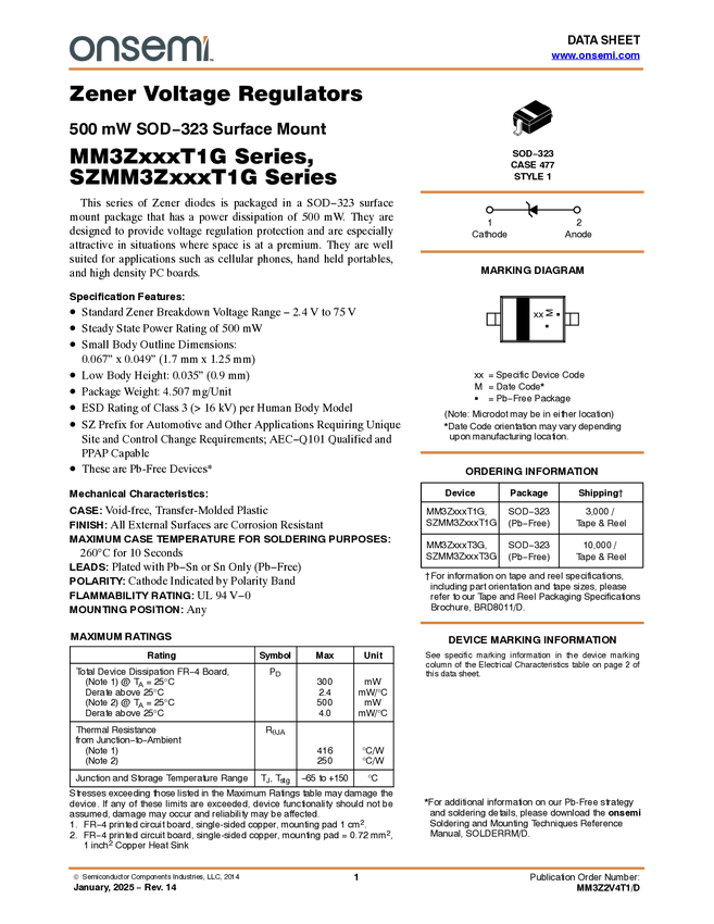 Zener Diode Voltage Regulator, 200mW, X3DFN (0201)