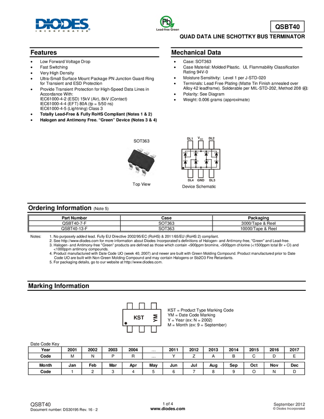 Układ scalony; zabezpieczający przed ESD; QSBT40-7-F; 30V; 200mW; 6 pin; QSBT4; SOT363; SMD; DIODES; RoHS