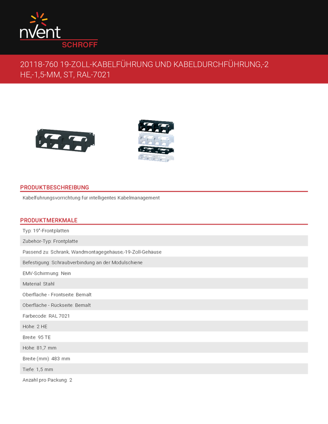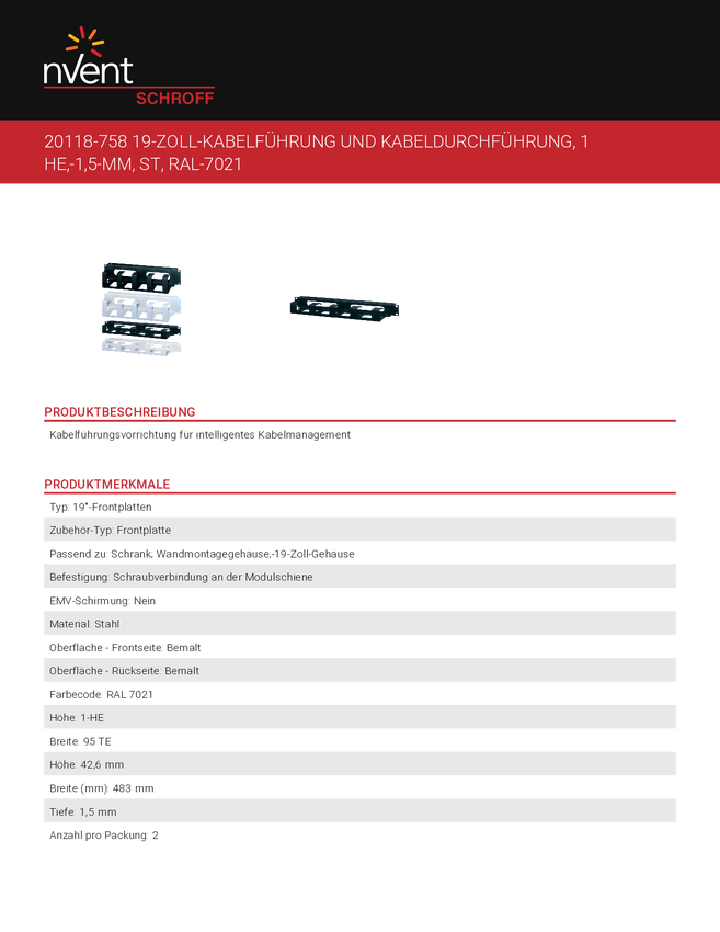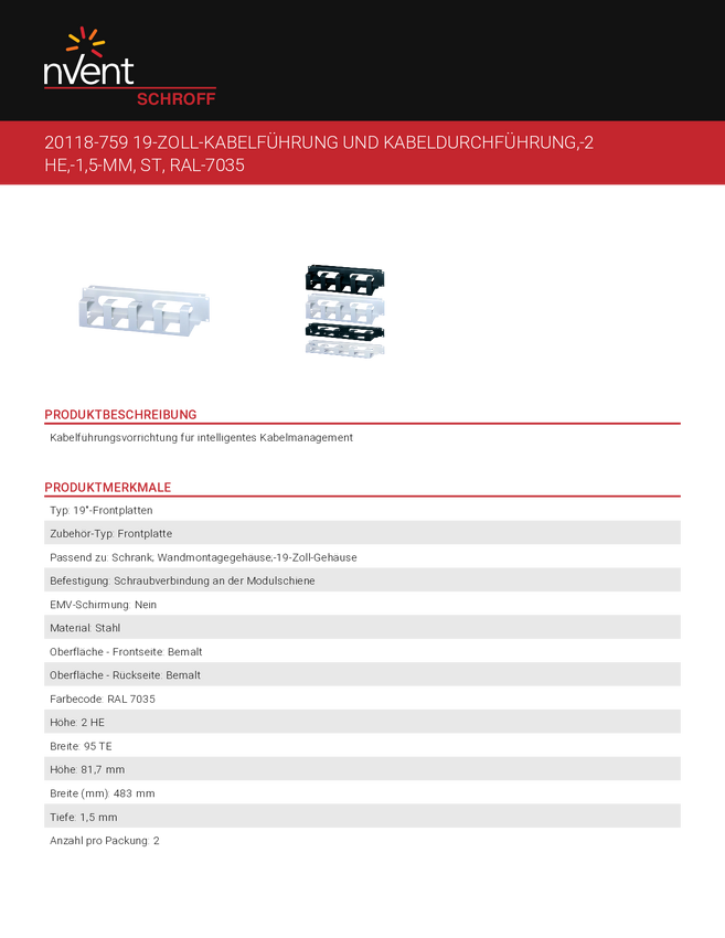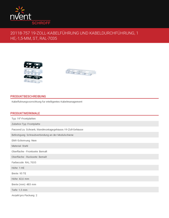 Panel zarządzania kablami nVent SCHROFF 20118715 20118715, 1 szt.