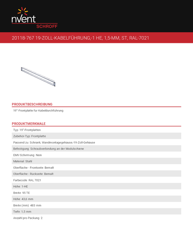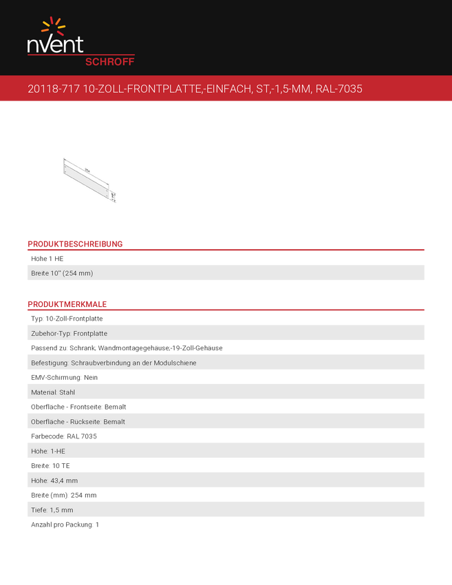 Płytka przednia nVent SCHROFF 20118717 20118717, 1 szt.