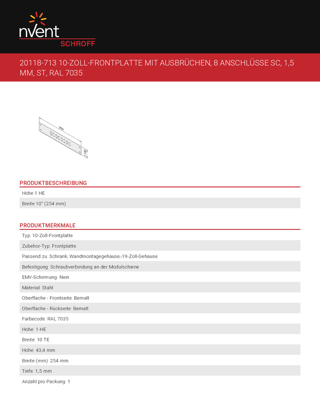 nVent SCHROFF 20118713 Płytka przednia 1 szt.