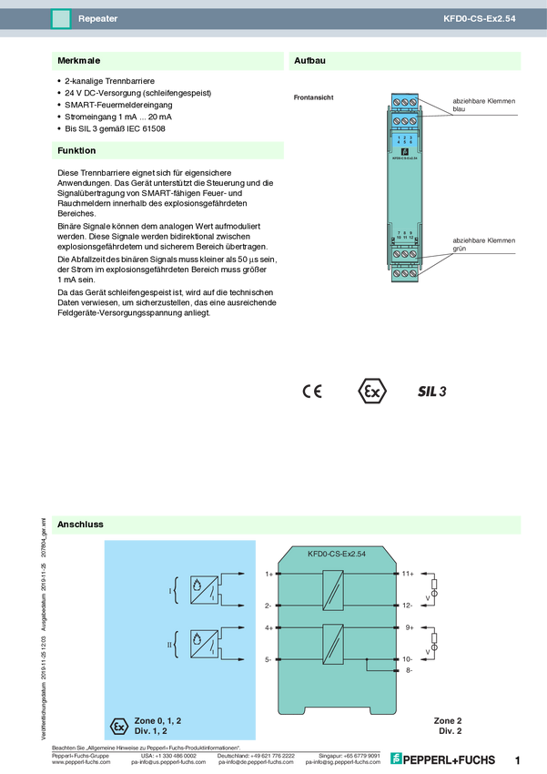 Pepperl+Fuchs KFD0-CS-Ex2.54 207804 Repeater 1 szt.
