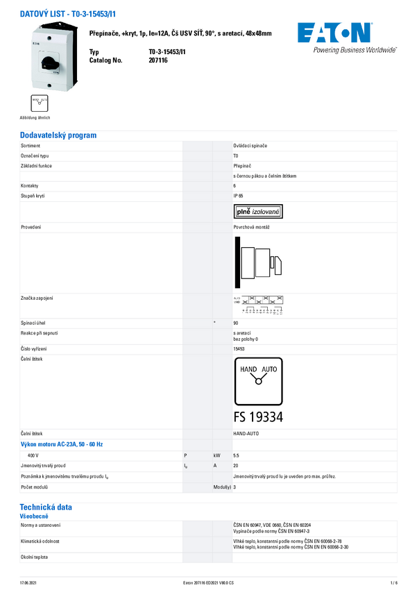 Eaton 207116 T0-3-15453/I1 Wyłącznik 1 szt.