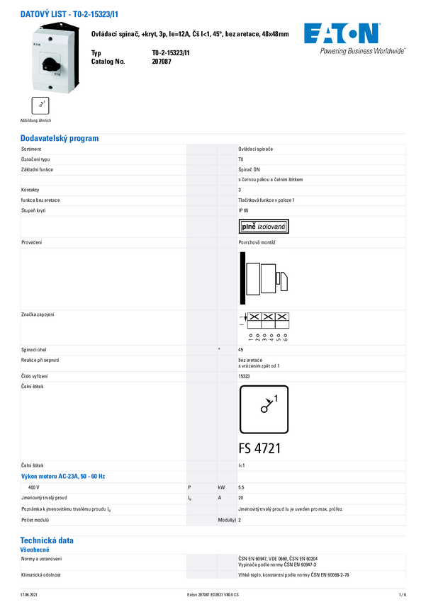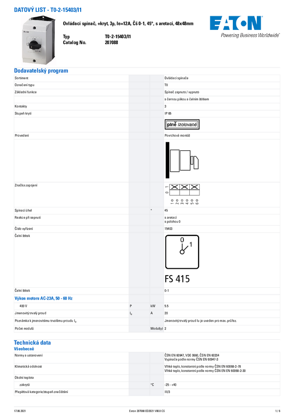 Eaton 207095 T0-2-15907/I1 Wyłącznik 1 szt.