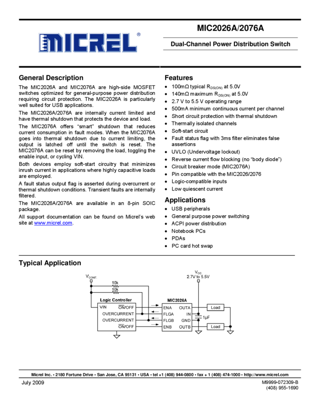 MIC2026A/2076A - Dual-Channel Power Distribution Switch (11/05/2015)